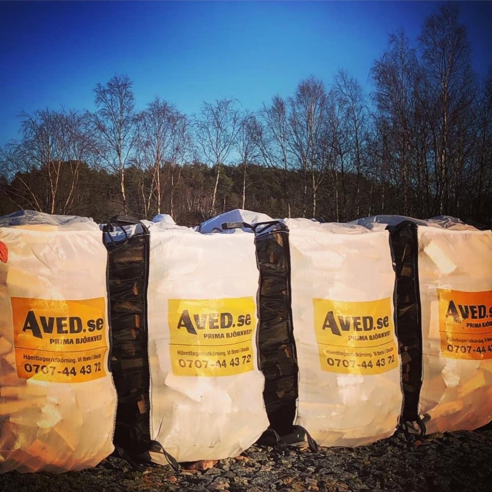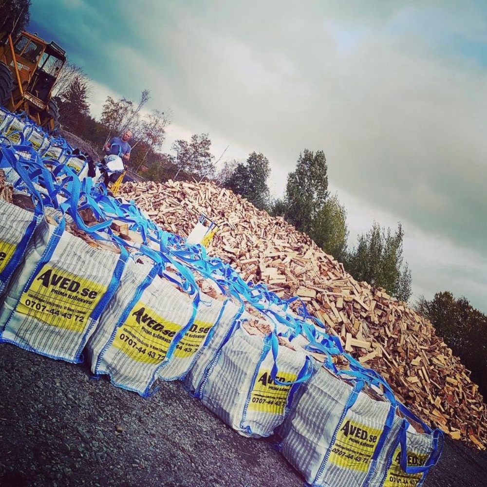 Vi har 125 liter säckar björkved som man när som helst på dygnet kan hämta och betala via företagsswish, pris/st 350kr. Tomsäckar återlämnas till Aved.